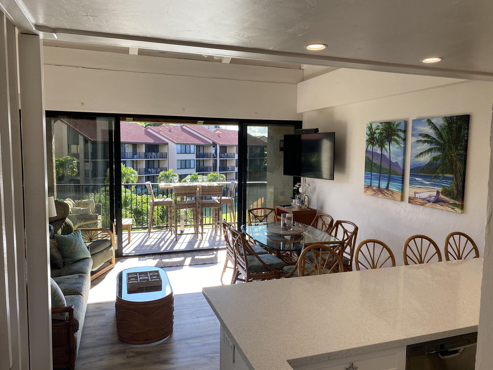 resort located near great beaches, restaurants and shopping. Guests can enjoy meals on the lanai