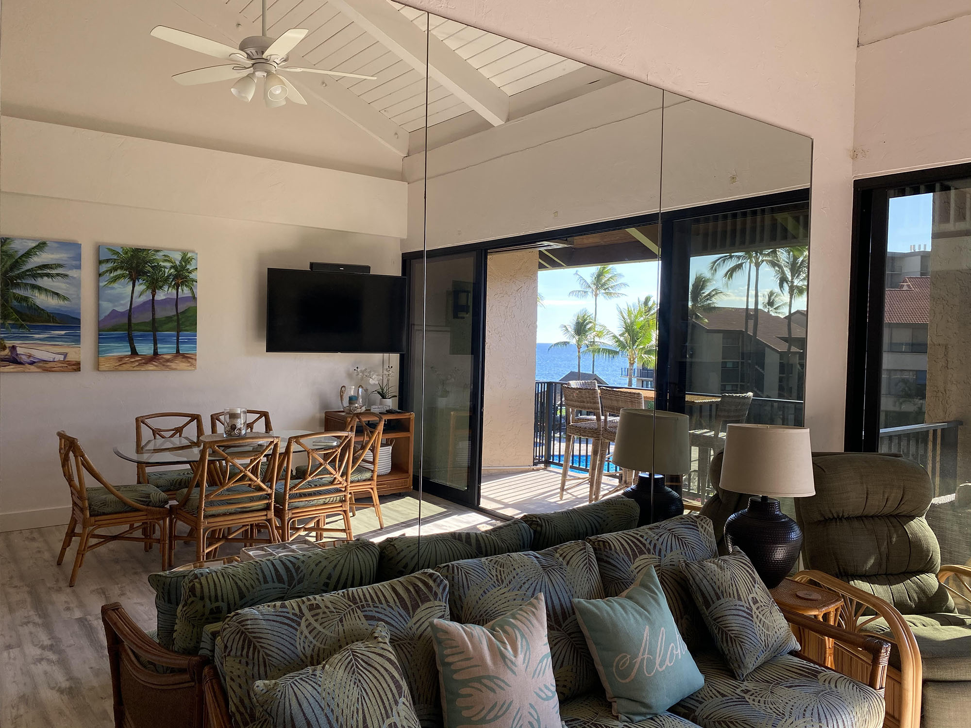 from the lanai (porch) and living room. One of our favorite activities is watching the whales from our